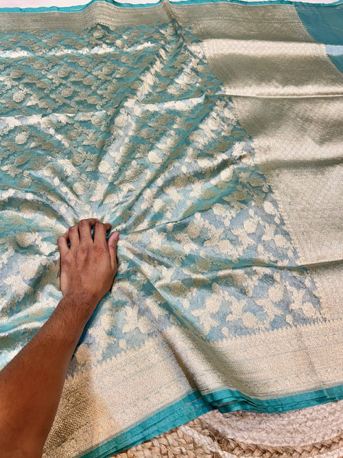Diamond Blue 100% Pure Tissue Silk Banarasi Partywear Saree